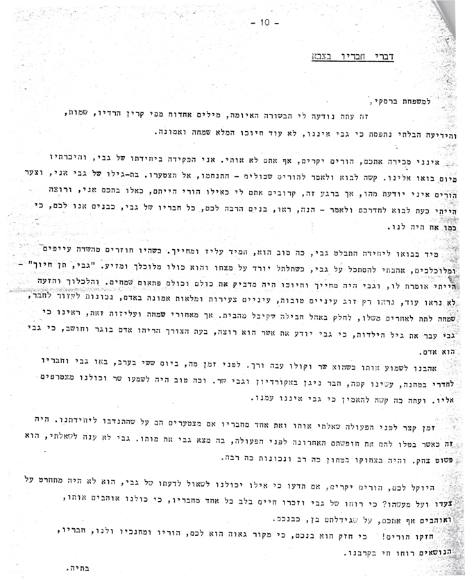 דבר מנהלת הנצחה ומורשת